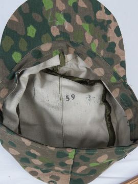 A pair of reproduction German boots (size 28 ½) together with a reproduction German Eagle sign/ornament (45cm wide) a reproduction German SS Dot camo cap (size 59) and a reproduction German Dot Camo smock (size XXL).