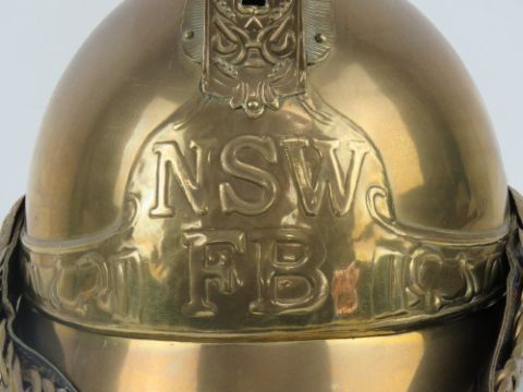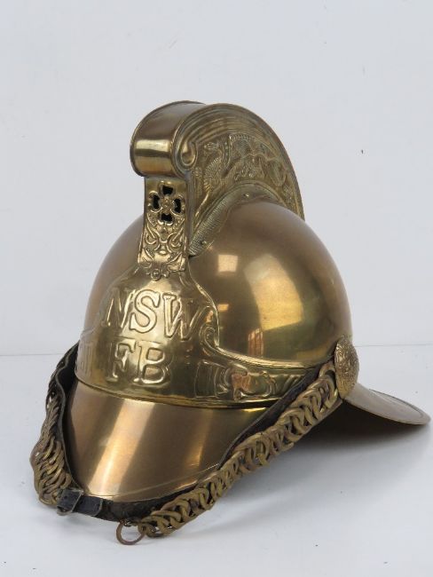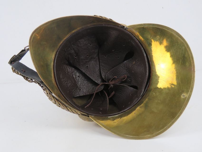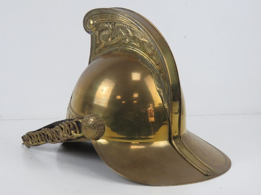 A reenactor or display piece Victorian style brass 'Merryweather' helmet.