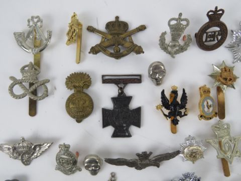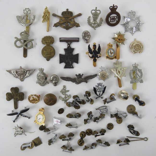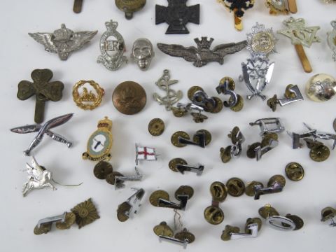 A quantity of assorted British cap badges and uniform insignia, approx 52 items, inc RAF, Royal Welsh Fusiliers, Royal Hussars, Royal Anglian, etc.
