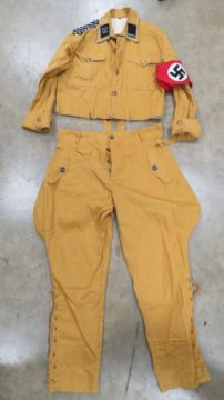 A reproduction WWII German SA Uniform, Jacket size XL, Trousers size XL.