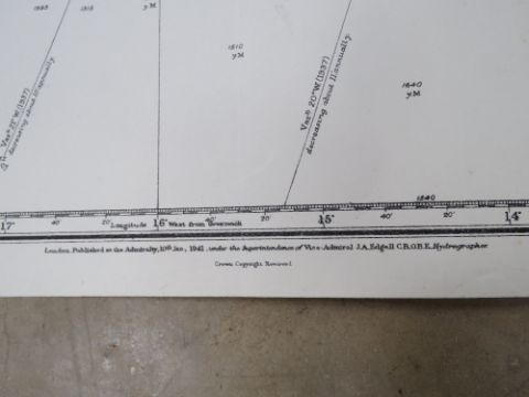 A quantity of Naval maps c1948 inc The Great Bahama Bank sheet IV measuring approx 101 x 76.5cm, North Western Approaches to the British Islands, Straights of Bab-El-Mandeb, Sayer Islands to Loughborough Island, Lochs Etive and Creran, Eastern Archipelago Sheet I, Port Sudan and Approaches, White Sea Sheet 7 and Langston Harbour and Approaches. Nine items.