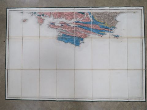 A quantity of geological maps inc two 1960/1961 French/Canadian mine maps, New Zealand 1958 and London and Thames Valley 2nd Edition 1947, Wisconsin c1924. Together with three Stanford's coloured charts for coastal navigators being the Thames Estuary No5, the Lower Estuary No6 and Southern Estuary No 19 (1972-1976). Also a map on cloth showing the coastline of Milford Haven in 24 sections.