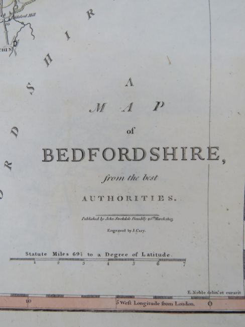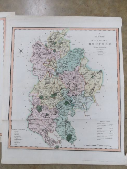 Five hand coloured maps being Northamptonshire (x2), each engraved by J Cary, Bedfordshire engraved by J Cary, Bedford and Berkshire. c1801-1808, largest measuring approx 64.5 x 52cm.