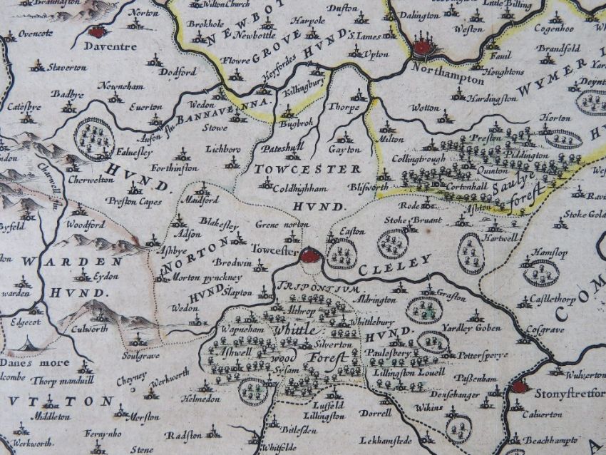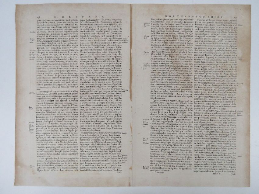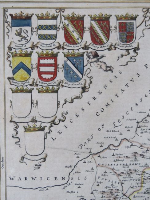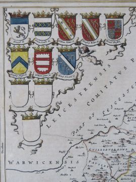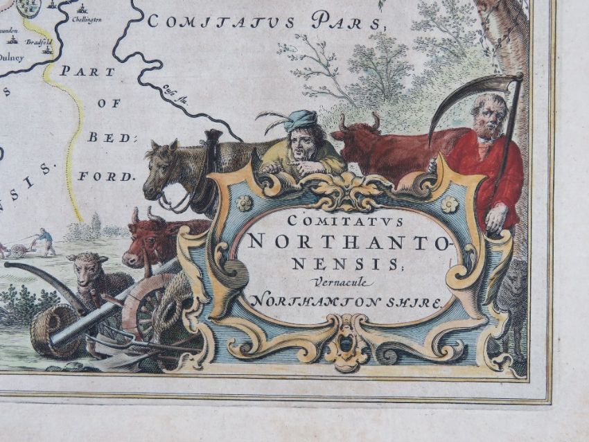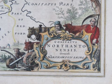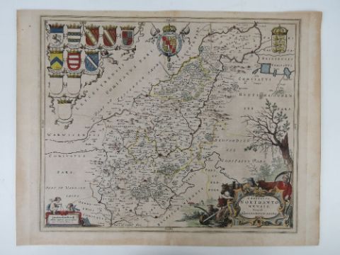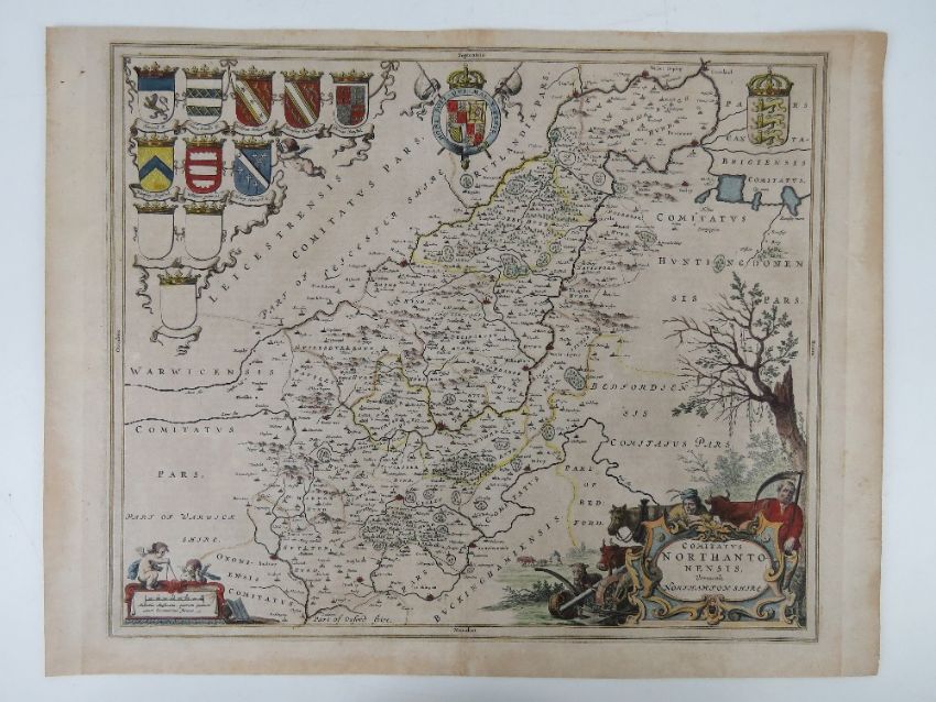 Northamptonshire and the situation of Northampton with the Arms of honourable families, hand coloured book segment map, all measuring approx 58 x 45cm.