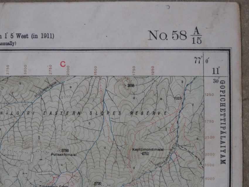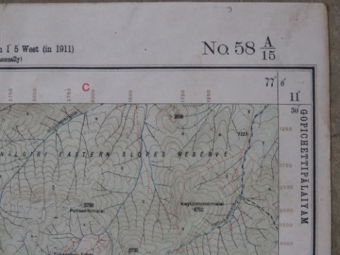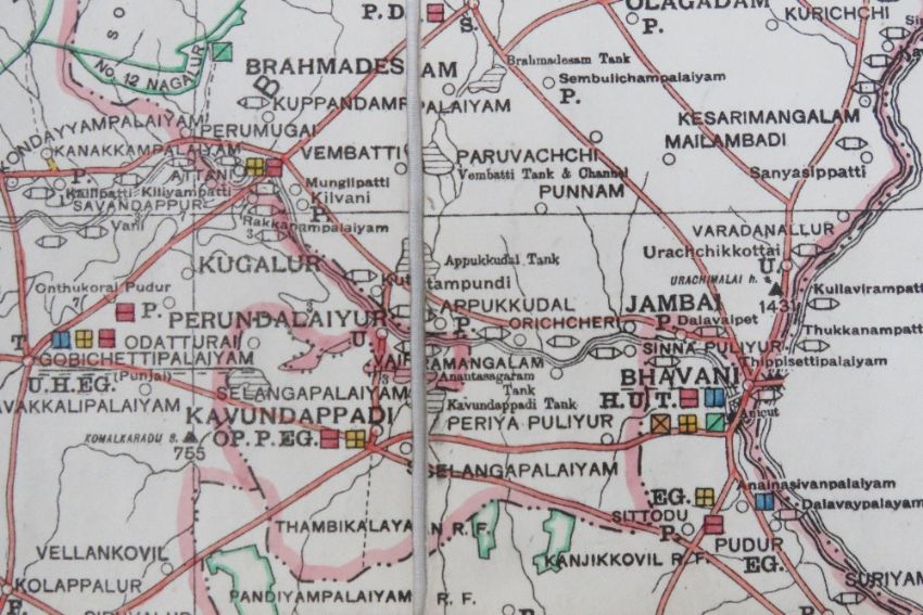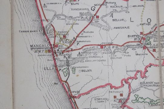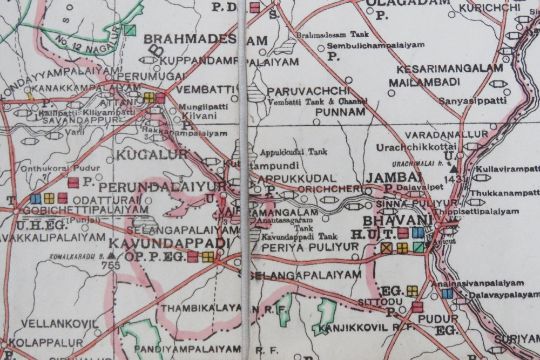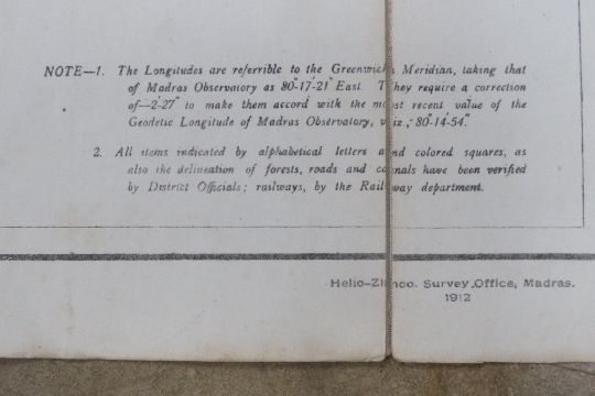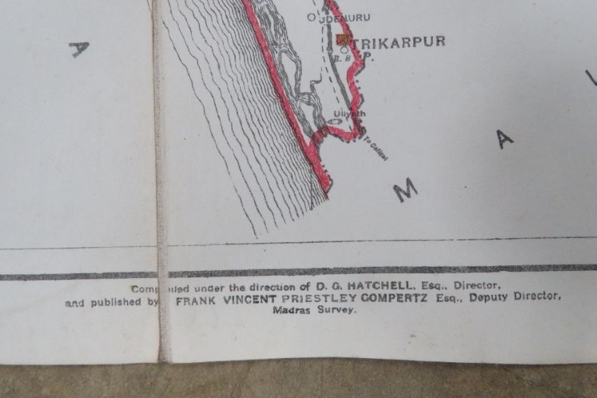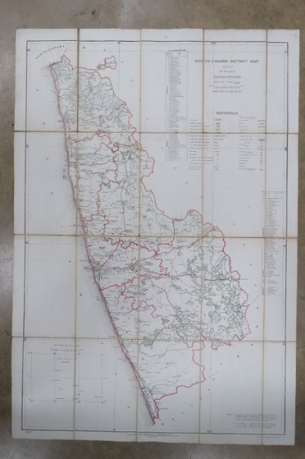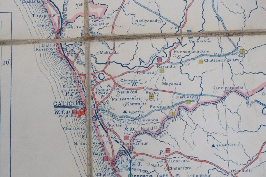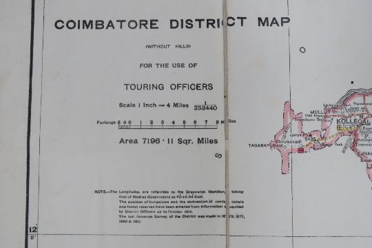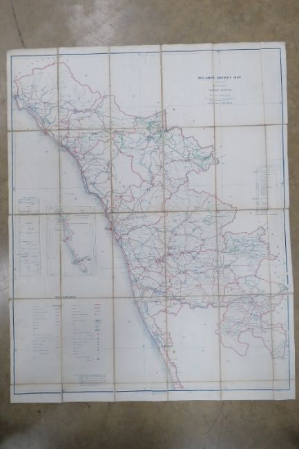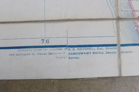 Madras c1913 in twenty one sections on cloth measuring 89 x 54.5cm. Together with three District Maps For The Use of Touring Officers c1912, each being in twenty sections on cloth for South Canara, Malabar and Coimbatore. Four items.