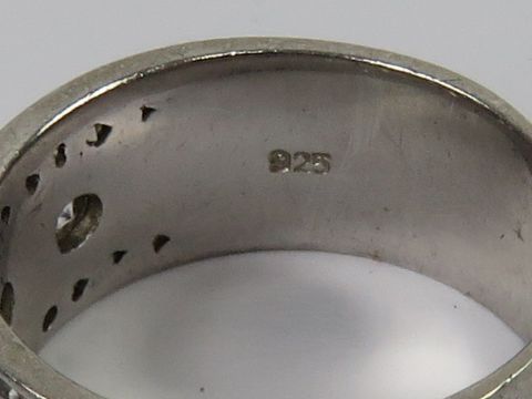 A silver ring designed by Zinzi, the wide band (9mm) set with cz stones, stamped 925 with Dutch hallmark, size O.