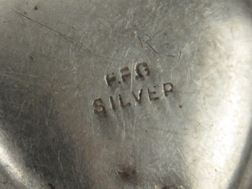 A silver locket in the form of a heart, stamped silver and measuring 3cm inc bale.