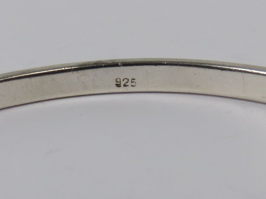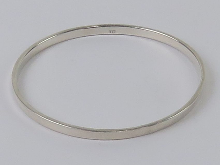 An HM silver bangle of plain design, internal dia 5cm, hallmarked London, 14.7g.