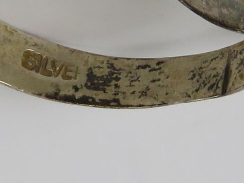 Two silver signet rings, one set with onyx, stamped 925, size S, the other having shield front, size P and stamped silver.