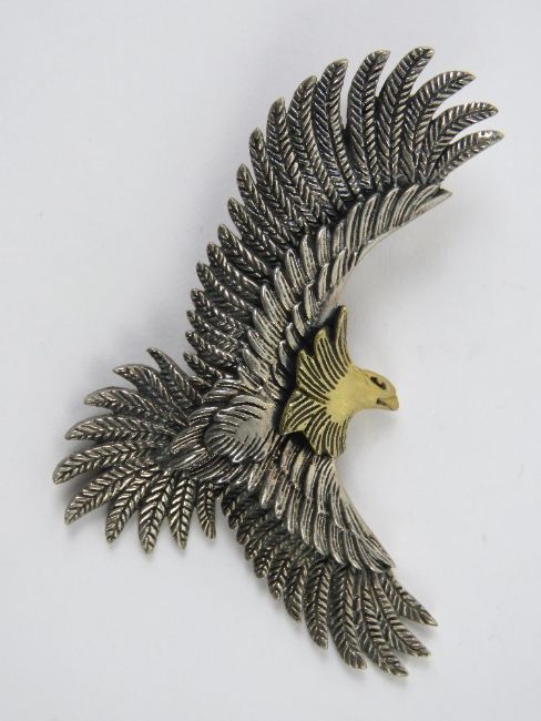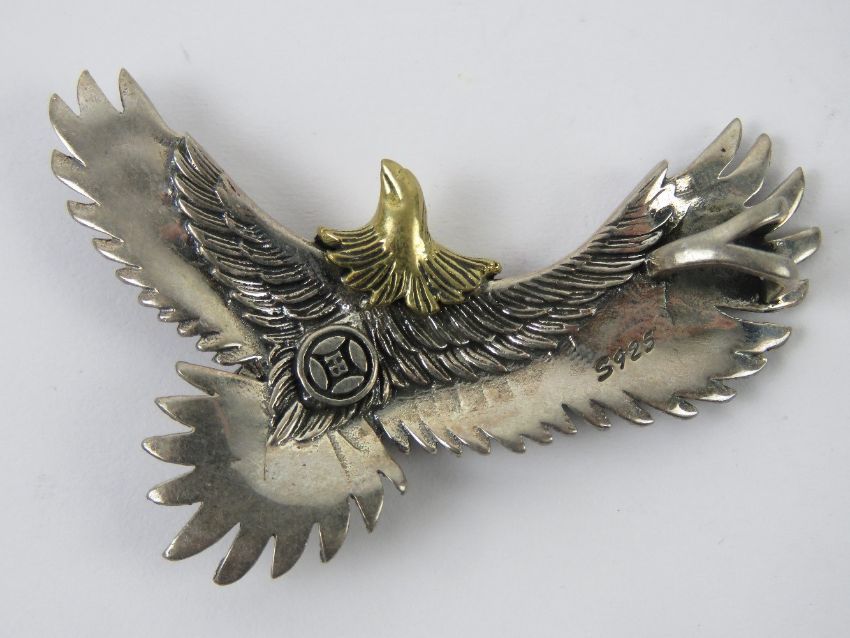 A silver pendant in the form of an eagle in flight, stamped S925 with maker's mark to back, approx 5cm in length, 13.8g.