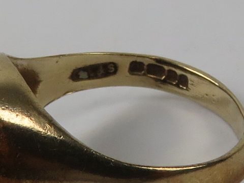 A 9ct gold and onyx signet ring, unengraved oval stone, hallmarked 375, size M, 2.4g