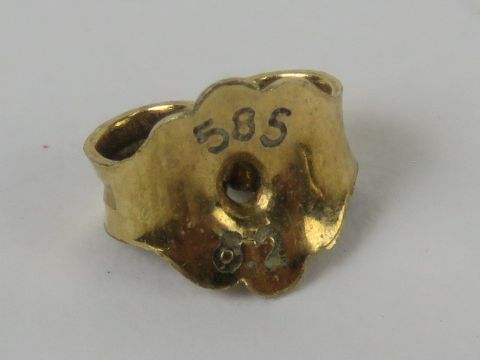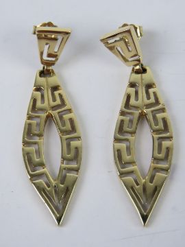 A pair of 14ct gold Greek Key pattern earrings, butterfly backs stamped 585, approx 4.8cm in length, 7.1g.