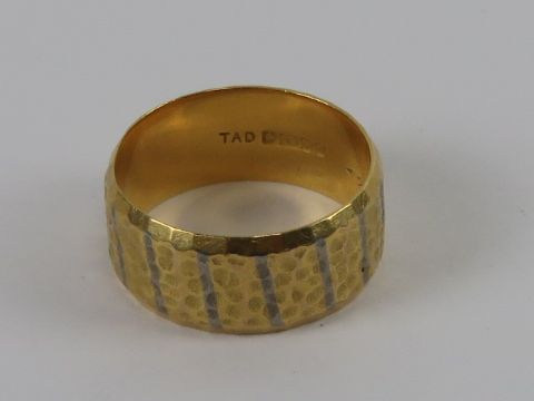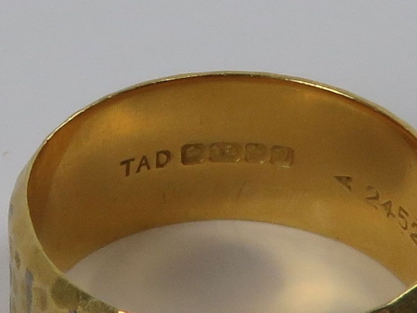 An 18ct gold wide band ring, hallmarked for Birmingham, size N-O, 6.4g.
