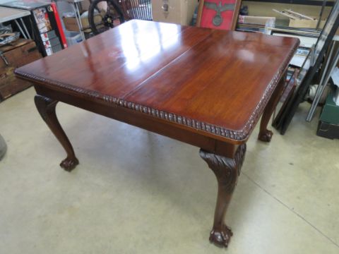 A good Edwardian mahogany extending draw leaf dining table raised over cabriole legs, terminating in ball and claw feet.