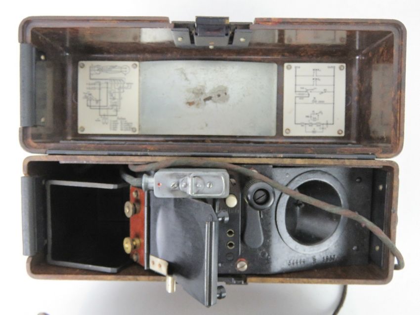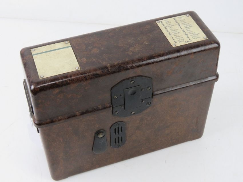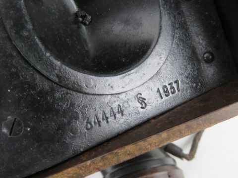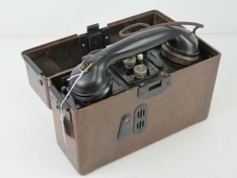 A 1937 field telephone in bakelite case having German military marks to handset.