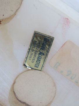 A pair of carved alabaster book ends in the form of Roman column bases, approx 20cm high.