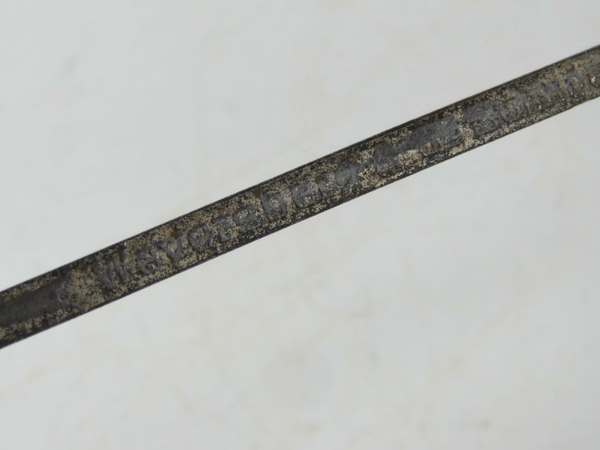 An Officer's sword having wire bound grip, lion's head pommel and oak leaf decoration to guard, guard a/f, blade measuring 45cm in length.