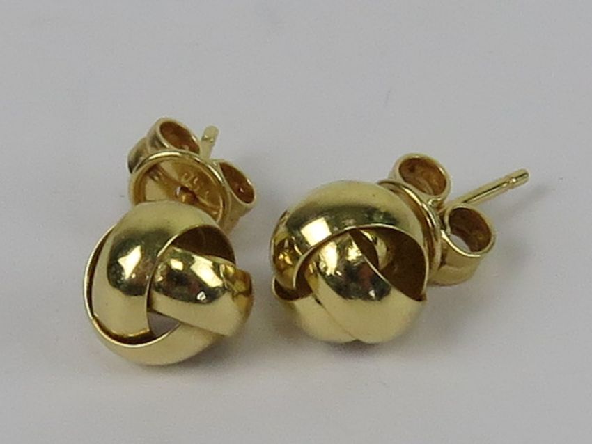 A pair of 18ct gold knot style earrings, hallmarked 750 to post, with butterfly backs, 2g.