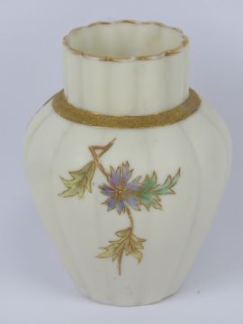 A Grainger & Co Worcester cream ground short vase having floral design upon, G & Co mark to base and numbered 1771, 12cm high.