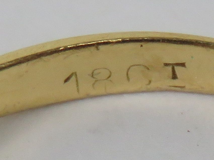 An 18ct gold ring having illusion set diamonds to the wrap style setting in white metal, stamped 18ct with resizer band upon, approx size P, 2.9g.