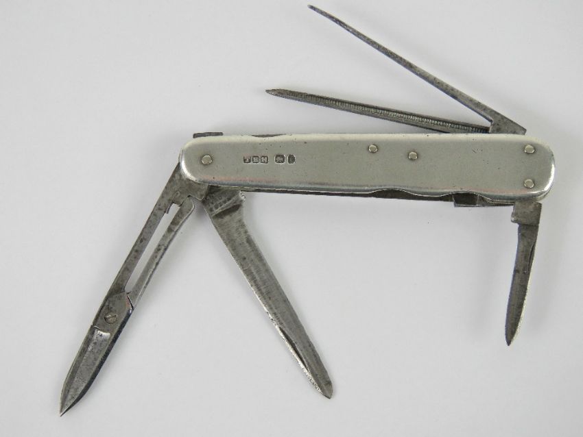 An HM silver multi-tool pocket knife, hallmarked for Sheffield.