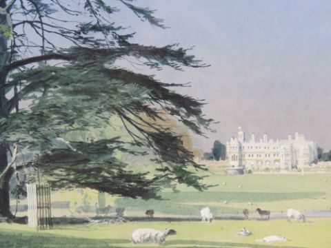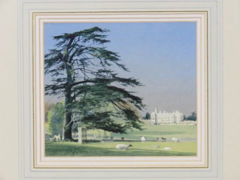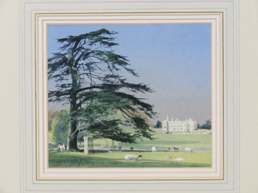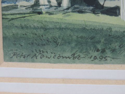 Peter Newcombe, an original watercolour 'Sheep in the park - Castle Ashby, Northampton', signed lower left and dated 1995, sight size 18.5 x 16cm, framed and mounted.