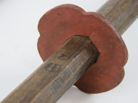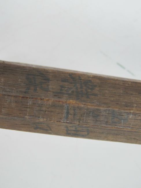 A wooden Bokken having Japanese characters hand painted upon, a hand written label applied 'Hiroshi' measuring 83cm in length. Together with another Bokken. Two items.