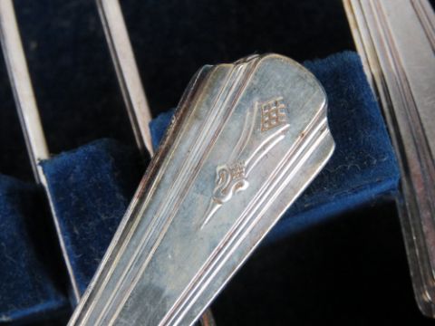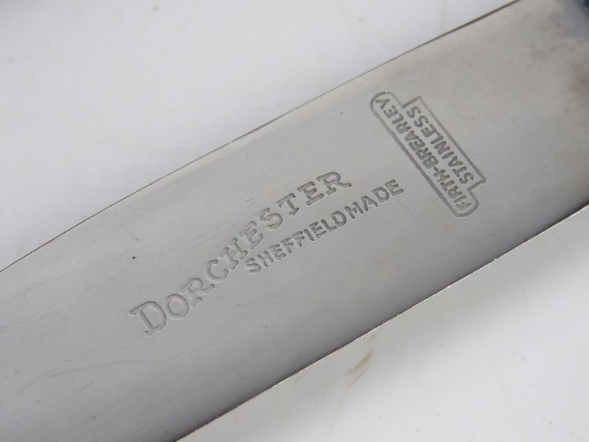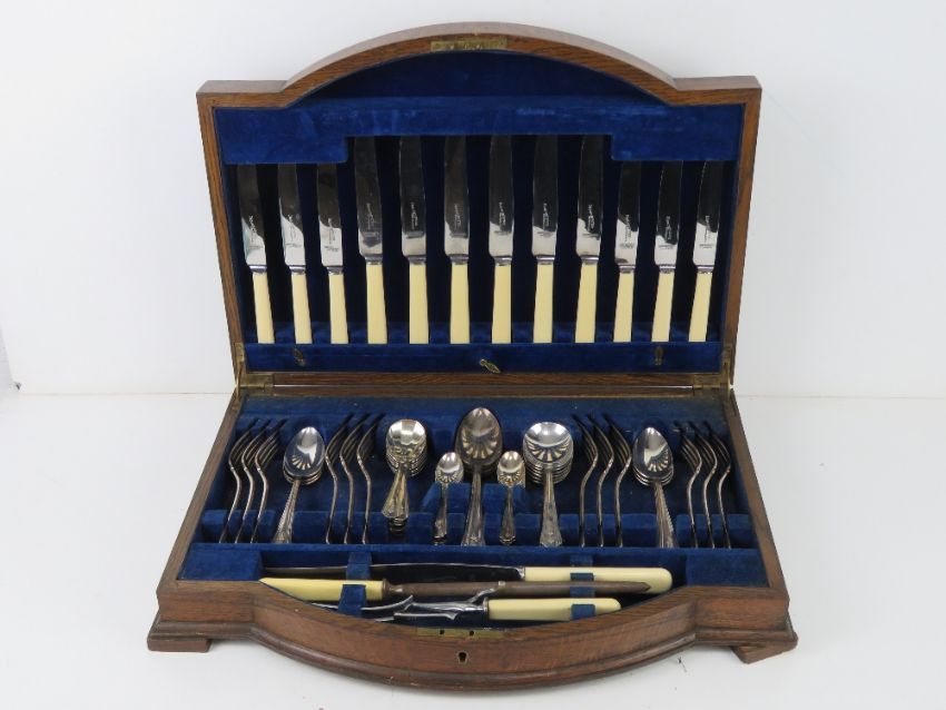 A quantity of silver plated and stainless steel cutlery inc carving set contained within oak canteen.