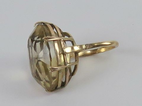 A large and impressive citrine cocktail ring, having indistinct hallmark, the oval cut citrine approx 25 x 18mm, size N-O. Total weight 11.9g.