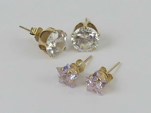 Two pairs of stud earrings each having 9ct gold butterfly backs, no apparent hallmarks.