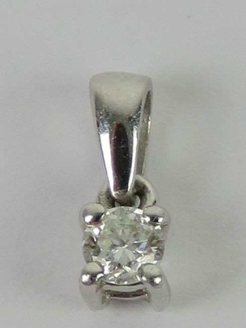 A 9ct white gold and diamond solitaire pendant, round cut diamond approx 2.8mm dia (0.08ct), hallmarked 375.