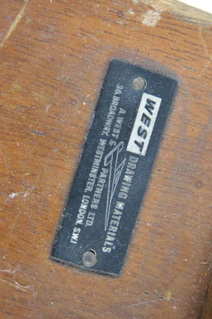 Two architects squares, one bearing label for A West & Partners, London.
