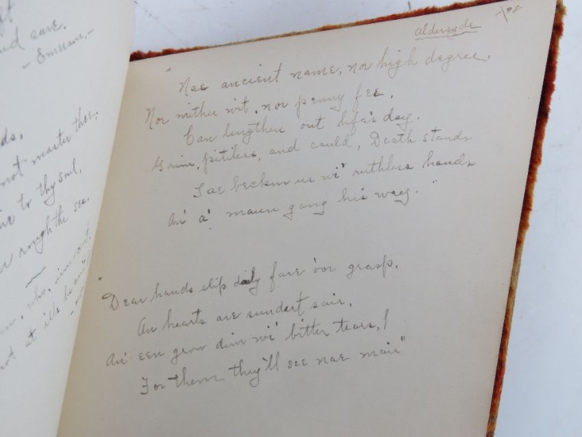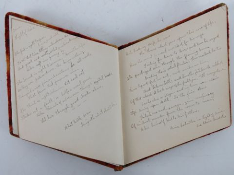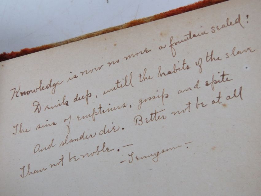 An early 20thC autograph album having a quantity of hand written famous passages within, mostly unused.