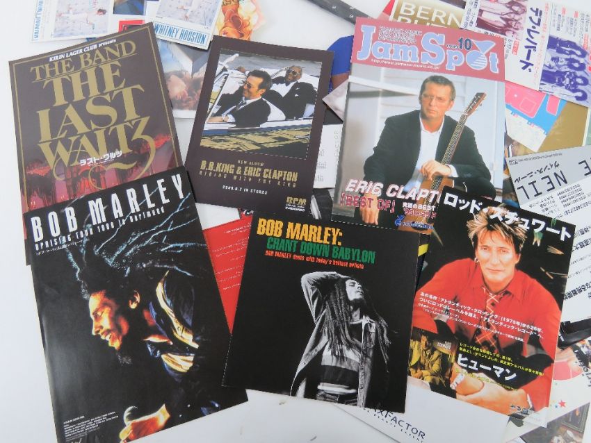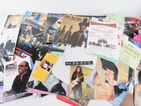 A large quantity of assorted pop, rock and metal concert memorabilia etc, mostly Japanese, inc W.A.S.P., Motley Crue, Metallica, Billy Joel, Pet Shop Boys, S Club 7, Pink Floyd, Steps, Wham (video stickers), Motorhead, Stereophonics, Korn lanyards, Bob Marley, Steely Dan, Eric Clapton, Bob Dylan, Ronan Keating, KISS, Busted, Rod Stewart 'Blondes Have More Fun' ticket 1979, six pages of stickers for Blink 182, Guns and Roses, Marilyn Manson, Nine Inch Nails, etc.