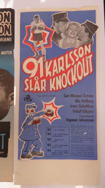 An original Floyd Patterson and Ingemar Johansson match poster in Swedish for the 1961 Convention Hall Miami match. Together with an original 91:an Karlsson slår knockout (1957) film poster featuring boxing world heavyweight (1959-1960) Ingemar Johansson. Two original posters, each measuring measuring 69.5 x 32.5cm.
