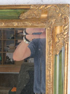 A good contemporary square shaped bevelled edge part gilded wall mirror, 64 x 90cm.