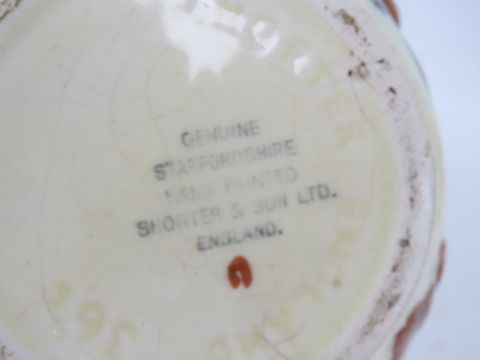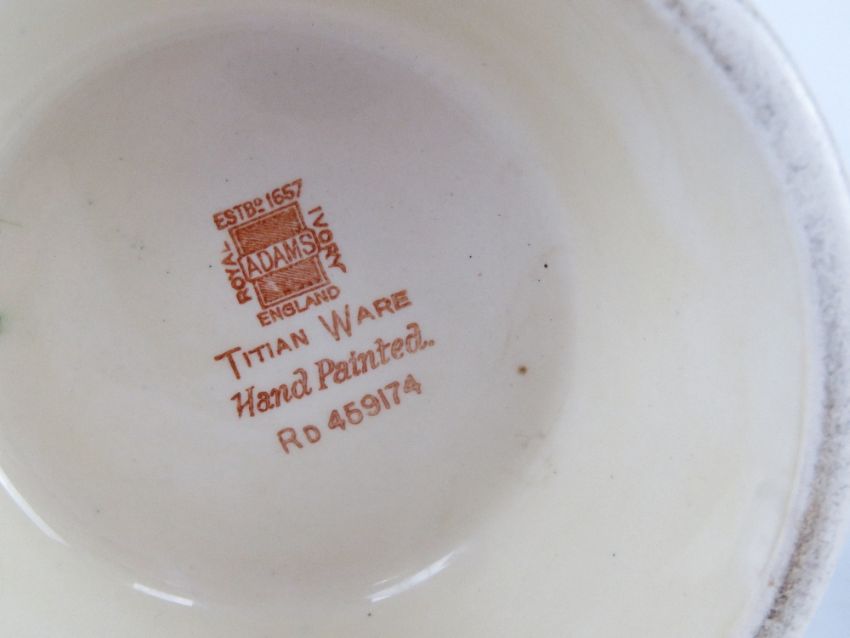 Four assorted decorative jugs inc Portmeirion Parian, Wade, Shorter and a hand painted large Titan ware jug by Adams (some chips to base). Tallest 26cm high.