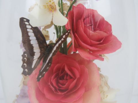 A 'captive garden' by Michael R Curzon having flowers and butterfly within, standing 30cm high.