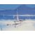 Print; a modern art print of a moored boat by Gavin Fitzsimmons entitled 'Mountains of Mourne' within Mediterranean scene, figures beside mountains beyond, 39 x 59cm, framed and mounted.