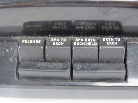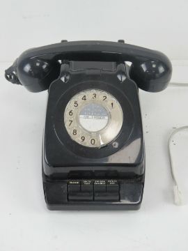 A vintage office extension/transfer rotary telephone in black.