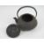 An oriental cast iron teapot having raised floral decoration upon, swing handle, oriental marks to base, approx 14cm dia, approx 15.5cm high.