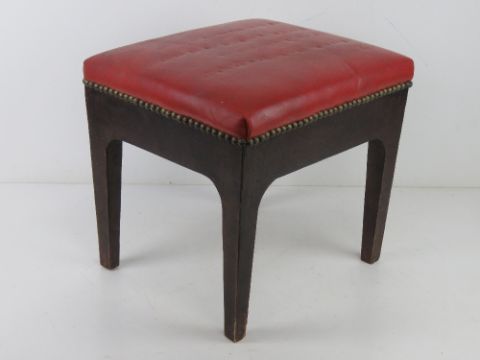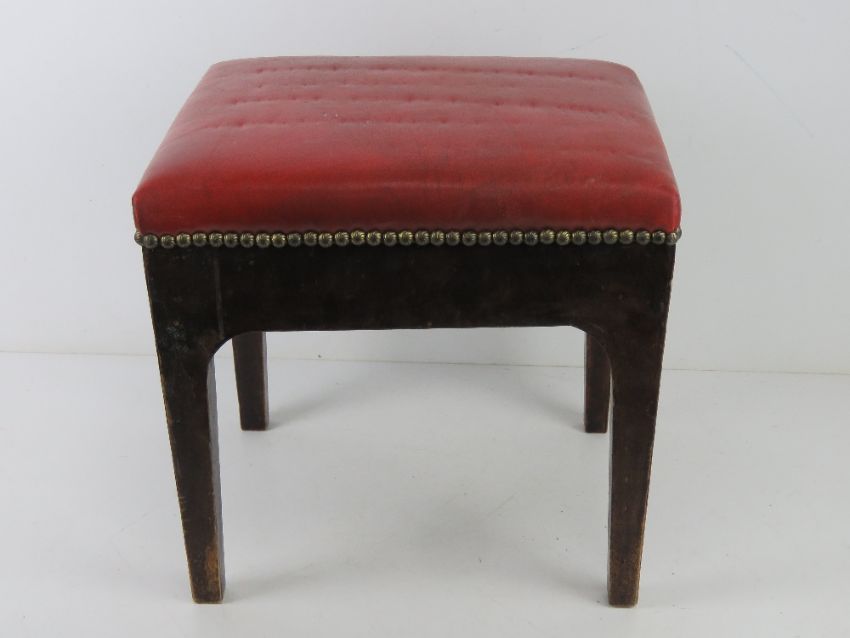 A footstool upholstered in red leather 37 x 32 x 34cm.