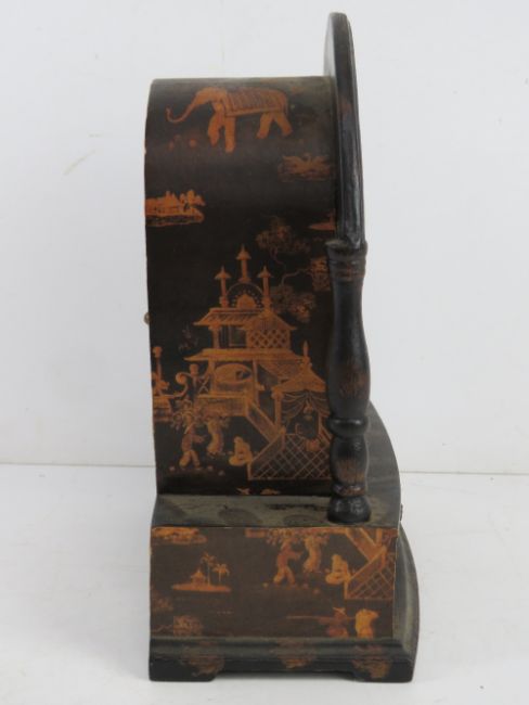 A contemporary mantle clock decorated with elephants having drawer under and standing 28.5cm high.