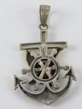 A large silver pendant in the form of an anchor with brass eagle upon, stamped 925 with maker's mark, 6cm in length, 16.7g.