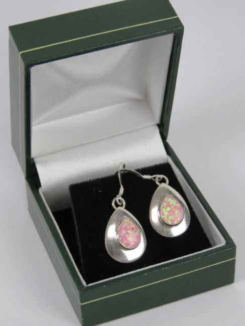 A pair of silver and pink opal earring, teardrop shaped and stamped ster., in presentation box.