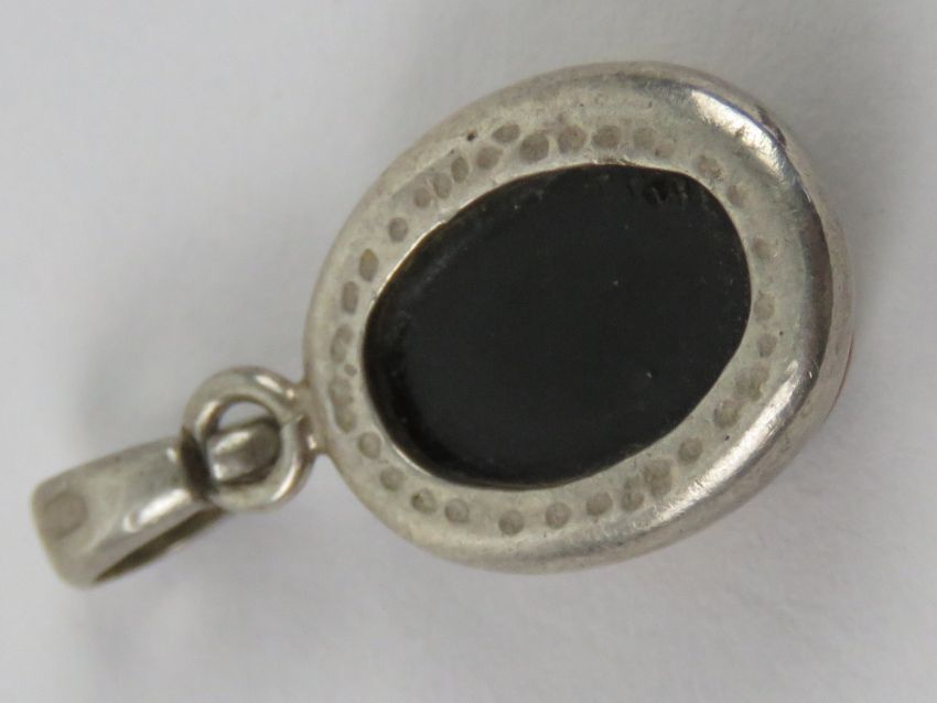 A silver and Baltic amber pendant, oval form, stamped 925, 2.6cm inc bale.