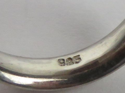 A contemporary silver and faux coral ring, stamped 925, size M.