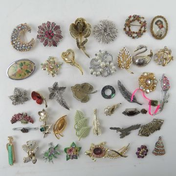 A quantity of assorted 20thC costume jewellery brooches.