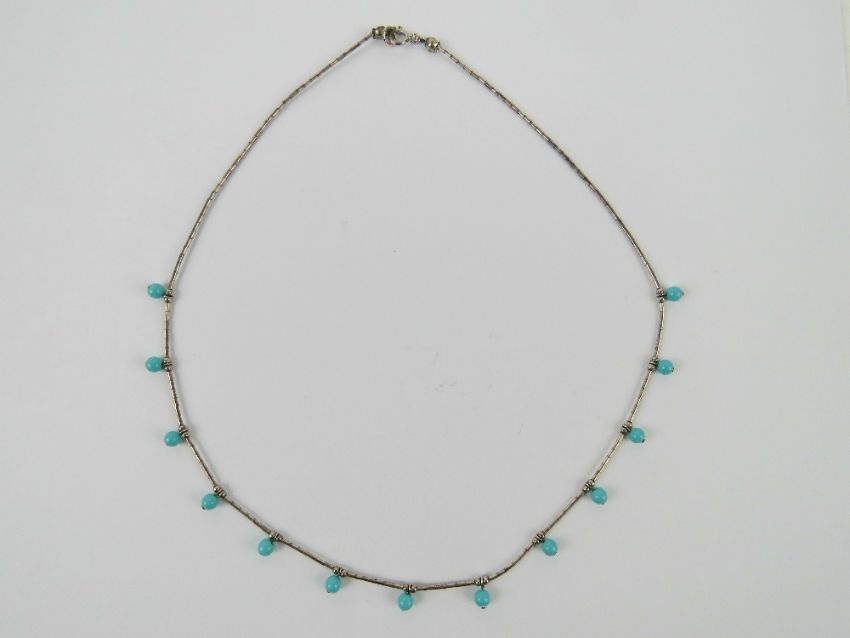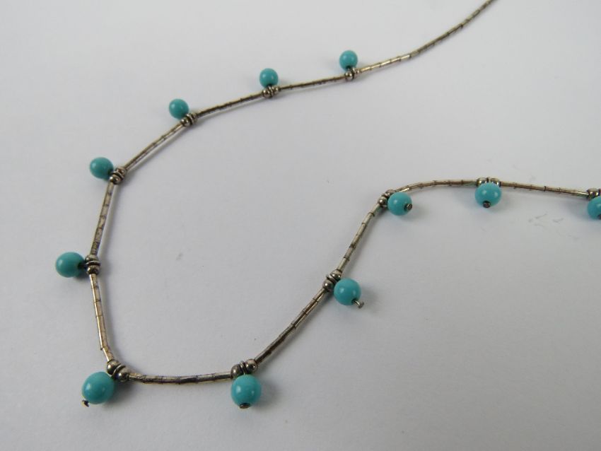 A Native American Navajo style silver and turquoise bead necklace, stamped 925 and measuring 41cm in length.