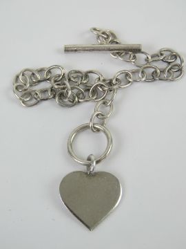 A HM silver charm bracelet having T-bar clasp with Heart charm upon, 19cm in length, 925 hallmark upon, 10.3g.